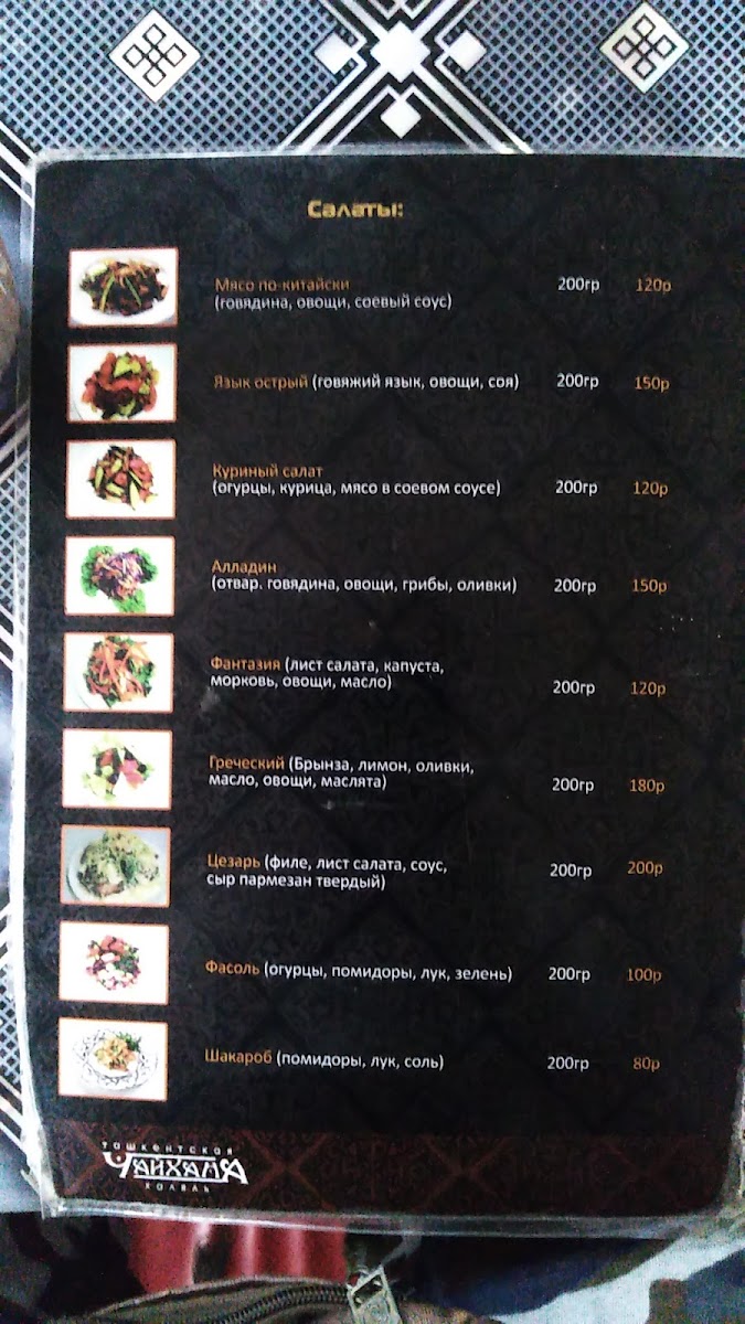 Chaykhana Tashkent Menu